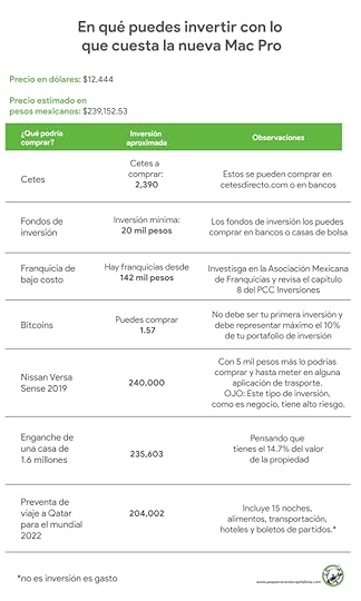 Ahora que ya tienes una idea de lo que podrías hacer con tu dinero, platícanos en redes sociales: Instagram, Facebook y Twitter en qué invertirías con lo que cuesta la nueva Mac Pro.