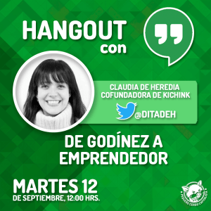 Si tienes esa cosquillita de dejar de ser Godínez y convertirte en emprendedor no te puedes perder el Hangout que haré con Claudia de Heredia, cofundadora de Kichink la plataforma de comercio electrónico más grande de México. Platicaré con ella sobre cómo hizo esta transición y nos dará los tips para que tú también lo puedas lograr. Asimismo, si conoces a alguien que quiera dar este paso, avísale que se conecte a nuestro canal de YouTube a las 12:00 de la tarde, hora del centro de México.