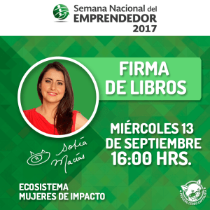 El miércoles es el día que andaré en la sede de la Semana del Emprendedor en el Centro Banamex de la Ciudad de México (aquí el mapa de cómo llegar y todos los datos), y de 4:00 a 4:40 firmaré autógrafos en el Ecosistema Mujeres de Impacto. Espero que puedas darte una vuelta por allá, ahí te espero.