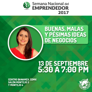 ¿Tienes una idea y quieres llevarla a cabo pero aún no tiene estructura? O, ¿ya estás desarrollando una pero no sabes si es rentable? El taller de ‘Buenas, malas y pésimas ideas de negocios’ es para ti y lo voy a impartir en el Salón Montejo 3 y Montejo 4 del Centro Banamex. El cupo es limitado, así que llega con anticipación.