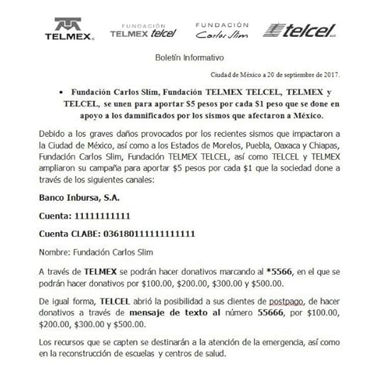 Si donan vía inbursa, Telcel o Telmex por cada peso ellos pondrán 5 pesos.