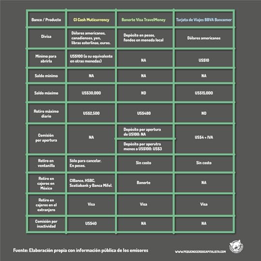 Existen varios bancos con productos parecidos. Entre los más conocidos están Viajes BBVA Bancomer y Banorte Visa Travelmoney que son exclusivamente para tener tarjetas prepagadas con saldo en dólares. CI Banco ofrece CICash Multicurrency en la que puedes tener el saldo en dólares americanos, euros, libras esterlinas, yen japonés y dólares canadienses.