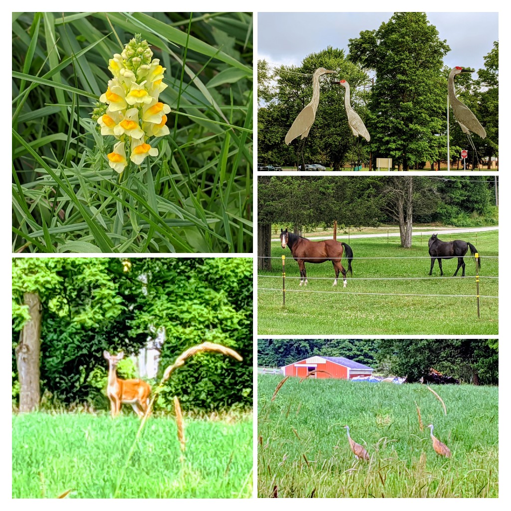 1111 Old School: Sheryl used to live there. I can see her getting off the bus. I have the urge to knock but don’t A driveway (new to me) disappearing into a tunnel of trees and a tangle of green (skunk cabbage, charlie, nettles, young timothy, white and yellow dandelion pops)