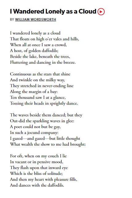 This "clip" is brought to you by the Poetry Foundation: I Wandered Lonely as a Cloud.