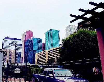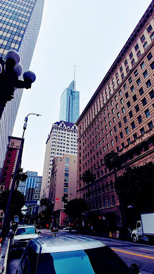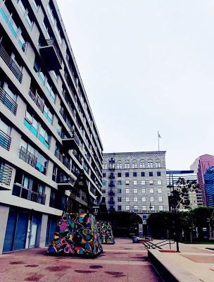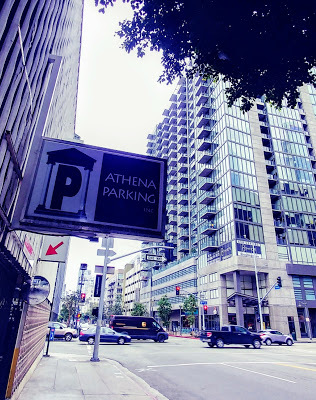 Parked at Joe's because of the flat rate: $6. Old time garage where you keep your lights on and honk every few seconds, so you don't run into anyone coming from the opposite direction. Felt like the least little shaker would've put my car under a ton of bricks. The whole area was a wonderful admix of old and new. Lots of youngsters/hipsters/what-have-sters with a sprinkling of homeless. I had coffee at Philz (smaller and funkier than my Philz), walked around for an hour, stumbled on a hidden park amid the jungle of highrises and concrete, met a couple of friends at IHOP for a "real" breakfast.