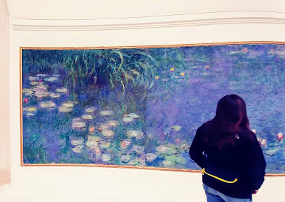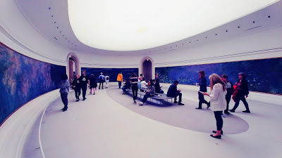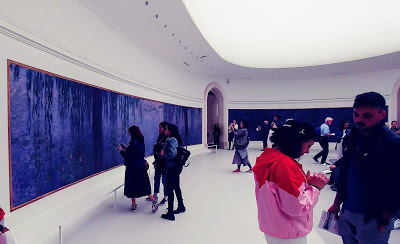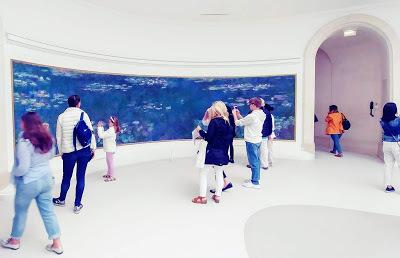They were much more liberal with pic-taking in Paris. Flash off, of course. We'd been to most of the "biggies" in Paris, but never the Orangerie. We passed our favorite Jefferson in Paris statue, tripped up the dusty path in the Tuileries, escaped Gollum with his ring, felt compassion for the owner of the pink phone leaning on its PopSocket, entered the oval fish bowls (Infinitiy has two rooms) and swam with the lilies along with everyone else. Wonderful!