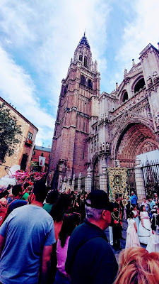Paid 3 euros to take a peek. No pics in Spain (unless you sneak). Wish I had it to myself, but that's the modern world. ME x 30 or more. Still it was something I'll never forget. Not to mention the whole old town done up for Corpus Christi. Fantastic!