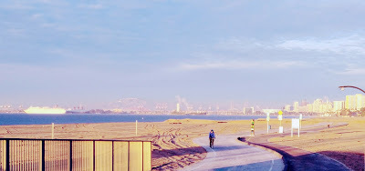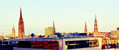 ***Fantastic light this morning: rosy highlights in the Heights, downtown awash in the white light of a rising sun.
