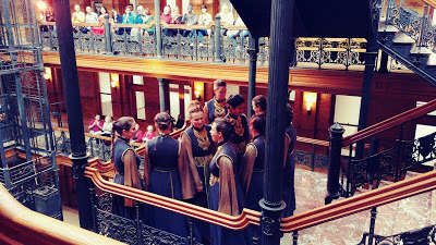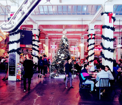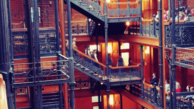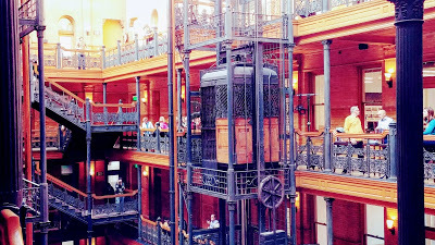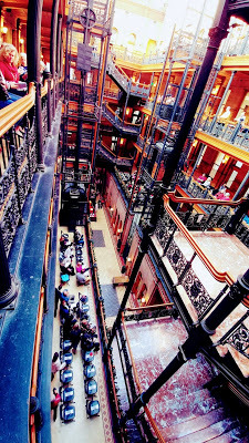 Always a treat. We had some corner seats on the 4th Floor. KITKA was almost at eye level once (they travel throughout The Bradbury while performing): a Finnish song about Creation (sounding like someone weaving). Then we had some good food at the Central Market. We even got there early enough to check out Angels Flight.