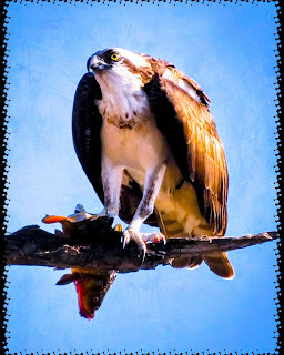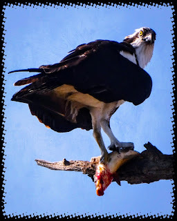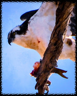 Ospreys @ Bolsa Chica. What's the only thing better than an osprey eating a fish -- you guessed 'er, Lester: an osprey catching a fish.:) Here's to "next best" things, and TGIFs. Have a great weekend! (And, GO BLUE!, even if my team cheats.😥)