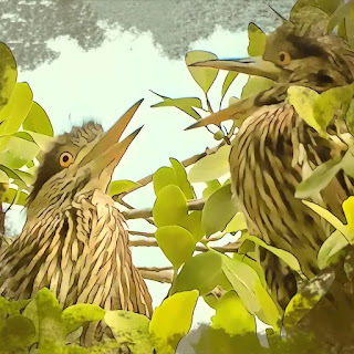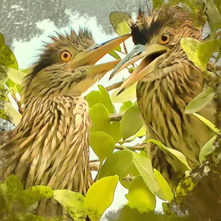 Black-crowned Night Herons (Youngsters) @ Naples Island "Heron Tree." Early morning squabble. Hope you are beating the heat.:)🎈