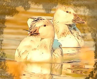Snow Geese @ Ken Malloy Regional Park. #1 to #3: the one blue/dark morph (juvenile) in the park; #4 to #6: the whites (a half dozen or so). From the little I've read on the topic: the blue guy will eventually get a white head.:) TGIF.