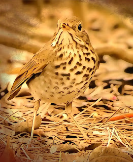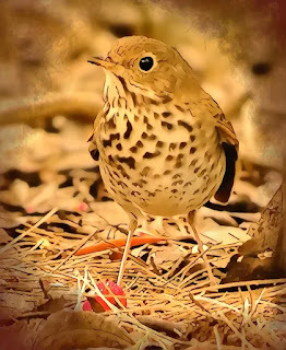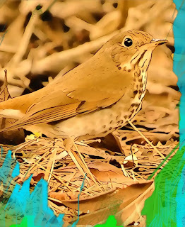 Well, I haven't heard the drip-dropping yet (not sure Eliot even saw the hermit thrush) but I've seen him atop a magnolia tree and foraging under a tree for berries. Good enough for me, he's as cute as can be. And besides: Snowy's getting all the publicity thus far in 2023. Make a little room for this little guy. Drip drop.:)