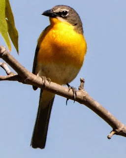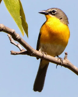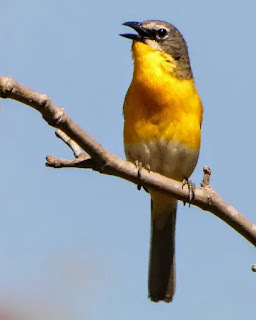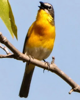 Yellow-breasted Chat @ Hellman Ranch Trail in Seal Beach CA. Lifer. Had almost given up. Took one more turn in the area others said they'd seen "them," and this guy (only one I saw) went through his fave tunes on his fave branch (about 10:00 AM).:)