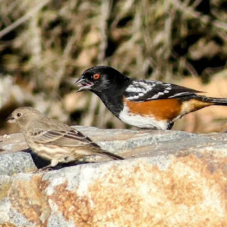 #rlswihart13 #somewhereca #christmasday2021 #birdsofchristmas #christmasgang #breakfastclub #housefinch #spottedtowhee #nature #poetry #beauty #readmorepoetry2021 #greentailedtowhee #whitecrownedsparrow