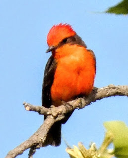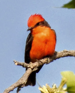 Vermillion Flycatcher @ Prado Regional Park. Shot one back in the winter (scroll down) and it was a thrill. This one was no less a thrill. Gave me three shots, this one is the best.
