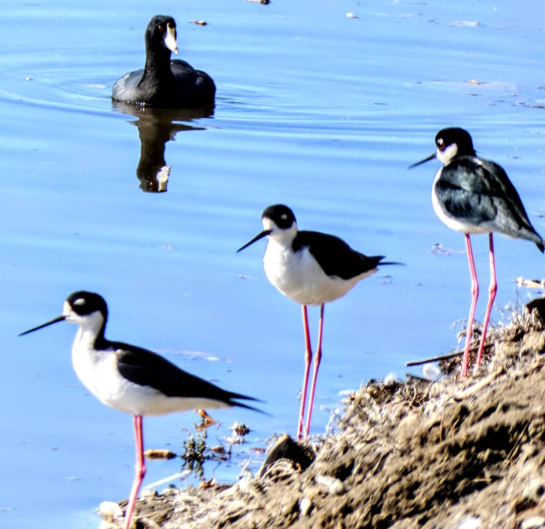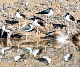 Bolsa Chica. Black-necked Stilts. Slumming it along the canal (too bad it's not cleaner), against the embankment and near the new housing development.
