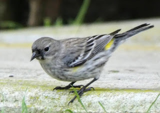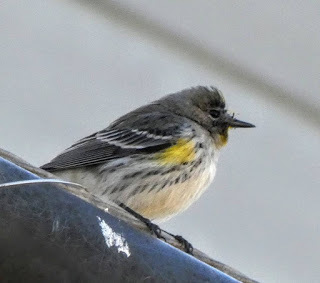 Long Beach. Greenbelt. Yellow-rumped Warbler. Ist pic shows the source of his name, 2nd shows what a bad hair day can do to you.