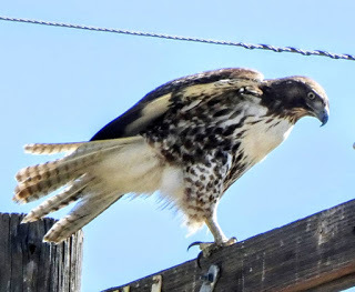San Jacinto Wildlife Area. Red-tailed Hawk. Spent yesterday morning there. Beautiful scenery and lots of hawks. Saw a lot but it was hard to get close with my little camera (Lumix FZ80). This is one of my few keepers.