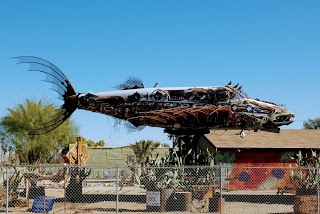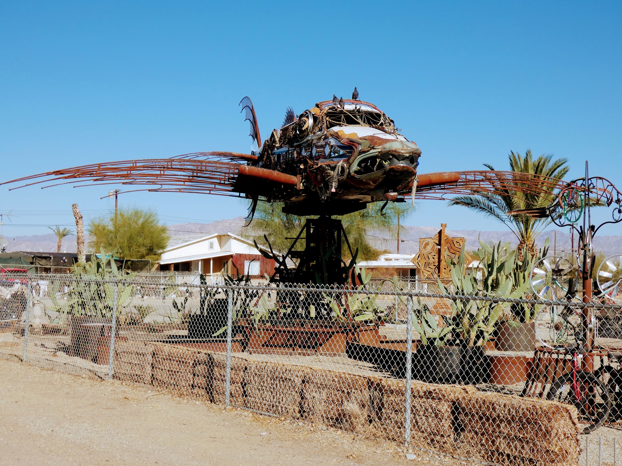 Salton Sea. Bombay Beach. Installation of crashed plane. Artist Randy Polumbo.