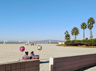 Long Beach. Breakfast or B-Day Party @ the Beach (Chilly!!!). Palos Verdes in the hazy distance.