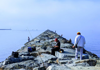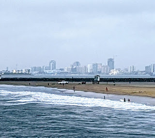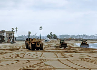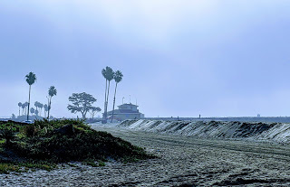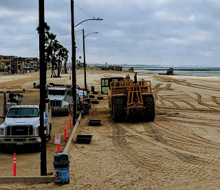 Seal Beach. Big trucks and the annual sand berm (for storm protection). A windy day on the pier. Walking.