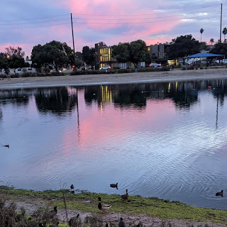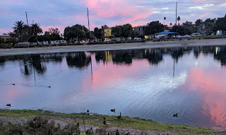 Long Beach. Sunset @ Colorado Lagoon. Coots playing along the shore (you'll have to blow them up).