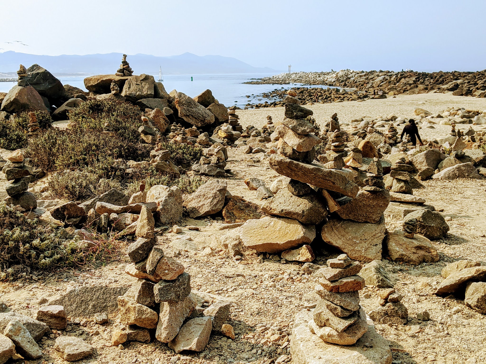 Morro Bay. The Rock. Inukshuk garden by the sea.