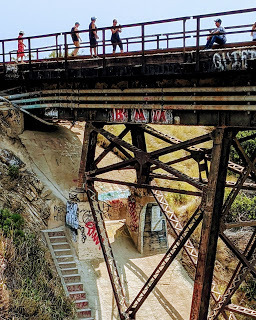 Back to Santa Barbara. Gaviota Trestle. There's the stairs (down to beach) but I couldn't convince her it was worth it.