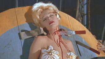 Vanda plays one of his victims, who meets a particularly gruesome end. Anton Diffring sabotages the knife-thrower's act and sexy target girl Magda von Meck (Vanda) is stabbed in the throat.