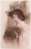 Several of Hechy’s fashion card series show her posed with interesting musical instruments. For example, the large instrument pictured on RPH 4128 is a theorbo which Wikipedia defines as "a plucked string instrument of the lute family, with an extended neck that houses the second pegbox.