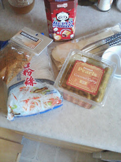The rest of the goodies: some noodles I plan to use for homemade Raman bowls, some chocolate biscuits my kids ate posthaste, and some adorable chopsticks and wasabi bowls.