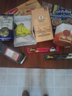 Shopping is so much fun! And guess what, even when you don't know the person, it's still so fun! I put together a Tropical S'mores Kit: coconut marshmallows, local chocolate, and caramel cookies. Some licorice. Some lemon almonds. Banana chips. Harry and David coffee.