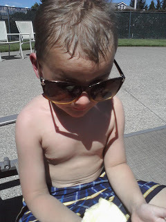 I convinced Mike to go with me, and part of the reason was for him. He had gone twice with Cora this week and I didn't want him to ruin his streak. So, despite the fact that it was a mere 94 degrees, I strapped on my sports bra and tennies and off we went!