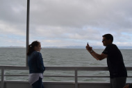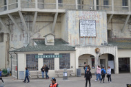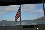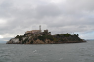 [image error]After the Giants won in extra-innings and we took photos of some of the statues celebrating great players like Willie Mays surrounding the ballpark, we began our walk to the boat where we would take a twilight tour (and the last tour of the day) to Alcatraz. We’d booked these tickets well in advance, so if you’re planning to go to San Fran and it’s a sight you want to see, be sure to order your tickets ahead of time. Along the way, we stopped at the Ferry Building on the Embarcadero, an historic building that serves as a terminal for ferry boats, a marketplace, and an office building. It’s worth pausing to take a photo from this location because it’s so beautiful. We continued on to our tour and lined up, and just as we did, the sky became cloudy and the winds began to pick up; the creepiness of Alcatraz was set in the distance and the sky reflected its stature and mood.