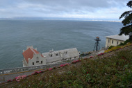 [image error][image error][image error][image error][image error]However, upon our arrival to the island, it was difficult not to notice the abundance of flowers—the colors of reds and yellows and pinks and oranges along the walls and grounds framing the landmark. Tour guides greeted us and offered a bit of brief history before we put our headsets on and listened to the best audio tour we’ve ever taken. The narrator, who guides and directs you through the jail, has a great voice—part gangster, part hard-ass cop—and he tells you to “turn left…look up…there are the keys that the prisoners stole…” as he recounts stories of jail, wardens, life on Alcatraz, and the famous escapes. Our kids thought this tour was fantastic, and my son does a pretty amazing imitation of the narrator.