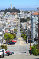 [image error]When the trolley finally arrived, Anthony and I sat on the seat and let the kids hang off the side as we rode all the way to the park with gorgeous views of the Golden Gate Bridge. I highly recommend the ride, even if the wait is long. It is so worth it. Watching the expressions on my kids’ faces as they hung on to the trolley as it climbed and then descended those steep streets was worth every minute of the wait. After hopping off the trolley, we took some photos in the park and then began our walk around the city, most notably taking the stroll down the famous Lombard Street as well as the steepest street in the city, Filbert Street. We walked to the Italian section and stopped at Molinari Deli for lunch, and ate our lunches in the park with a view of the church where Joe DiMaggio and Marilyn Monroe had their photos taken on their wedding day (St. Peter’s). My daughter got a kick out of feeding the pigeons, causing a scene whereby tons of them descended and she was like the Pied Piper. We sampled some outstanding Italian Cookies from Victoria Mara’s that rivaled Baltimore’s Vaccaro’s, which is pretty hard to do. I also got to stop by and visit City Lights Bookstore, where all the beat writers like Jack Kerouac and Allen Ginsberg used to hang out. Afterwards, we climbed Coit Tower, the Butterfly steps, and many other streets to become acquainted with San Francisco’s hills, which offer incredible vantage points for photography in the city. We ended our tour by hopping in an Uber and seeing the Painted Ladies, Victorian homes painted in the all sorts of colors. That evening we ate at Fino in Union Square then completely crashed because we were so active.