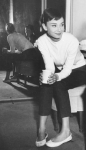 The woman in front of him looked at me and smiled.