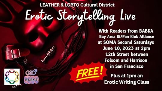 1pm – I am teaching a class on how to write erotica at SOMA Second Saturdays in San Francisco (12th Street between Harrison and Folsom by Eagle Plaza, outside the Eagle SF)