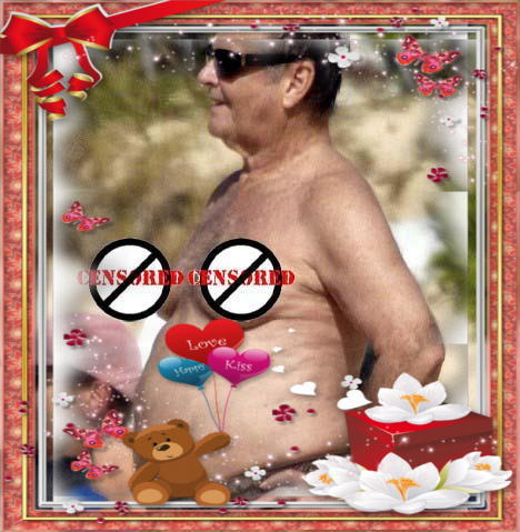 The potentially offensive image of a breastfeeding mother and child has here been replaced by a photo of Jack Nicholson topless surrounded by teddy bears.