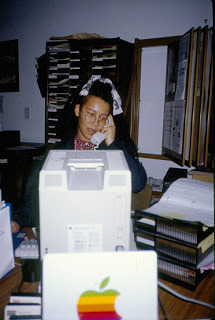 Me in the late 80s getting schooled on tokenismI was living in the Tenderloin, and I was 19 years old. I managed to get out of the cycle of 28 day a month Single Room Occupancy hotels by getting into a residence hotel: this warrants some explaining, but before the laws changed to prevent it, San Francisco low-rent hotels in the Tenderloin used to prevent tenants from staying for more than 28 days in a row because if you stayed 29 days you would establish legal residence and that would mean the landlord would be forced to evict you to get rid of you. The residence hotel I wound up in was a cooperative hotel with a lot of artistic residents. It was also a hotel with a population of mostly single, mostly either white or black, mostly middle-aged tenants, but the tenants weren't really all that universally liberal about race relations. There was a big racial tension going on that I was naively unaware of. They elected management staff, and I was elected to the position of assistant manager. After I was elected, some drunken tenant ran up to me and told me that he and his buddies voted for me because they thought that I was "neither black nor white" and would somehow maintain some secret racial balance that would keep the powder keg from exploding.