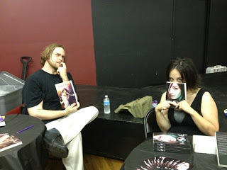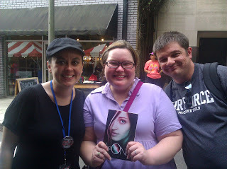 I got to meet for the first time Brittni from Britt's Kick-Butt Blog and Michelle (whom I'd been chatting with on twitter) from Literati Literature Lovers. She had us pose for her: