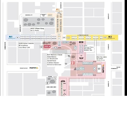 Below is map that you can download and print marked with the authors I know who will be there as well as their table number so you'll be able to find us easily. Pretty sure we'll all be selling in signing, PLUS there will be TONS of swag being handed out.