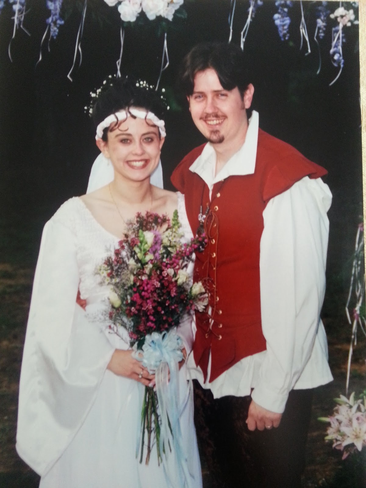 Yep! That's me on my wedding day, and yes we had a Renaissance wedding. And today I celebrate 15 years with the most amazing, and talented man. This is us now.