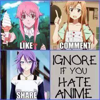 The meme in question.Well, this day could be going better. One of my external hard drives became corrupted and is now yammering on about the benefits of the Dark Side for hours on end. So I installed some program to see if I can fix it, but its taking forever. So in the meantime, let's talk about something completely irrelevant for a while.About a year or so back on Facebook I shared a meme that had four or so pictures of 3 girls from three separate anime series and under each picture was written the words "like", "comment", "share" written in big letters, and the fourth pic was written "Ignore if you hate anime." Honestly, the only reason I shared it is because I thought it was mildly funny, and a friend of mine had used a picture of one of the girls as her Facebook avatar for a while. I wasn't trying to start anything (heck, at the time I only knew who one of these characters were)....But another friend of mine (let's call him "Edward") decided to start something anyway. For no reason other than he was irritated at something, he decided to leave a link to an article from Kotaku called One-Punch Man Shows why Manga Still Matters.