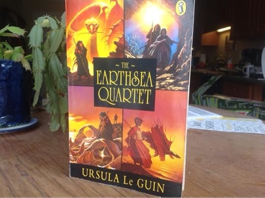 Way back in the Stone Age, I wrote a blog post giving a very brief history of Fantasy Literature. Well, OK, it was more about "Epic Fantasy Literature" than the genre as a whole, but....actually now that I think about it, I really should go back and change the title of that post. But anyway, In that post I mentioned several books series that helped shape the genre as we understand it to day, one of which was Ursula K. Le Guin's Earthsea series, which at the time I hadn't read (I'm so sorry ^_^;). But since then, I have acquired the first five books (the fifth being the short story collection 'Tales of Earthsea') and I'm working my way through them. I've only completed the first two books so far, so I'm not prepared to do a review of the entire series yet, but I will give my thoughts on what I have read so far. Also, this post is going to be a bit of a text wall becuase there's some construction going on in my room/Office and I am typing this on the Blogger app on my IPad, which kinda sucks for adding pictures and such. So, yeah, sorry about that.Anyway, for those who don't know, the first book in this series is entitled, "A Wizard of Earthsea," which was originally published in 1968. To simplify, the story is about a young man named Ged, later known to the world as Sparrowhawk, who at an early age is shown to be strongly gifted in magic and is trained as a Mage, first by his Aunt. Then by Mage living on the same Island named, Ogion, who teaches him about the balance (basically the idea that magic can go against the course of nature) and then finally he is sent to the Wizard School on the Island of Roke. There he thrives, excelling in all of his studies, and is admired by his fellow students and teachers alike. He becomes powerful, proud, arrogent. And it's arrogance, as it so offten does, that gets him into trouble. One night, in response to a rivals challenge, he casts a spell that accidentally rips apart the fabric of reality and unleashes a shadow monster from the realm of the dead, that attacks him and scars his face. Although he survives, and the rip he created is closed by the Mages that run the school. The creature escapes into the world and starts hunting Ged. The rest of the book deals with Ged trying to get away from this thing.