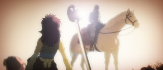 When we last left Guts, he had just been recruited by Griffith into his company of mercenary, The Band of the Hawk, It's also here that we meet Casca, the only woman in the company. But unlike Gut's adoptive mother, she's not the camp whore. No, she's second in command, and is as good with a sword as any of the men. Hell, when they first meet, she's able to hold her own against Guts, blow for blow. But anyway, that other thing that characterizes Casca, and this is a very important detail, is her undying loyalty to Griffith.