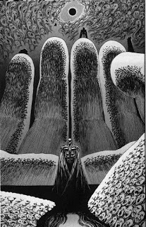 I have very conflicting opinions when it comes to giving first impressions on things. On the one hand I like doing it because I can still give my opinions on something as I'm experiencing them. On the other hand, the opinion I give might turn out to be an incompletely thought and is much harder to pin down objectively. In the case of The Furthest Shore, I've yet to read the entire book, and so I have to urge you to take what I say about it with A LOT of salt and consider it as an incomplete thought. Anyway, The Furthest Shore is the third book in Ursula K. Le Guin's Earthsea series. And thankfully, unlike The Tomb of Atuan Ged is once again a central character...but he's still not the main character. No, this time the main character is a Prince named Arren from the kingdom of Enland. Who has come to visit Ged, now Archmage of Roke's magic university, to discuss with him a very dire matter. Magic seems to be dying from the world and nobody knows why. Ged takes it upon himself to go forth with Arren and solve the mystery. I'm not real sure what to make of Arren, personally. He's basically a male version of Tenar from the last book, at least in the sense that he's almost completely ignorant of the world outside of his homeland. but the other side of this, and his entire reason for staying in the story so far, is that he's irrationally smitten with Ged and wants to learn from him. Granted, that's what I would want to do, but still. Hell, he begs early on to stay at Roke and become his page/servent. Now, I know that that's a common theme in this series, they're all coming of age stories. But it feels like Le Guin is