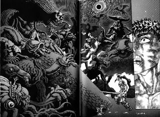 This is one topic I've wanted to cover ever since I woke this blog back up. Yes, because I'm an anime and manga fan, but more so because of how fascinating Berserk as a series actually is. Even so, I held off on doing it since I know that many who actually read this blog aren't THAT interested in all the nerdy stuff I talk about (or if they are, they don't tell me. Seriously who do I gotta bribe to fill up my comments section? *laughs* kidding), and I wanted to let what I had to say cook in my noggin until it came out as a piping hot thought. Weather that time is now, I don't know. But I'm gonna talk about it anyway. Also guys, I can't analysis any aspect of this series without spoiling it, so if you don't want spoilers, turn away now. Oh, and some of the pictures I'm using for this are actually pretty violent and disturbing. You've been warned.