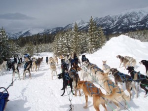 Dogs ready to go on tour in Moonlight Basin, Montana